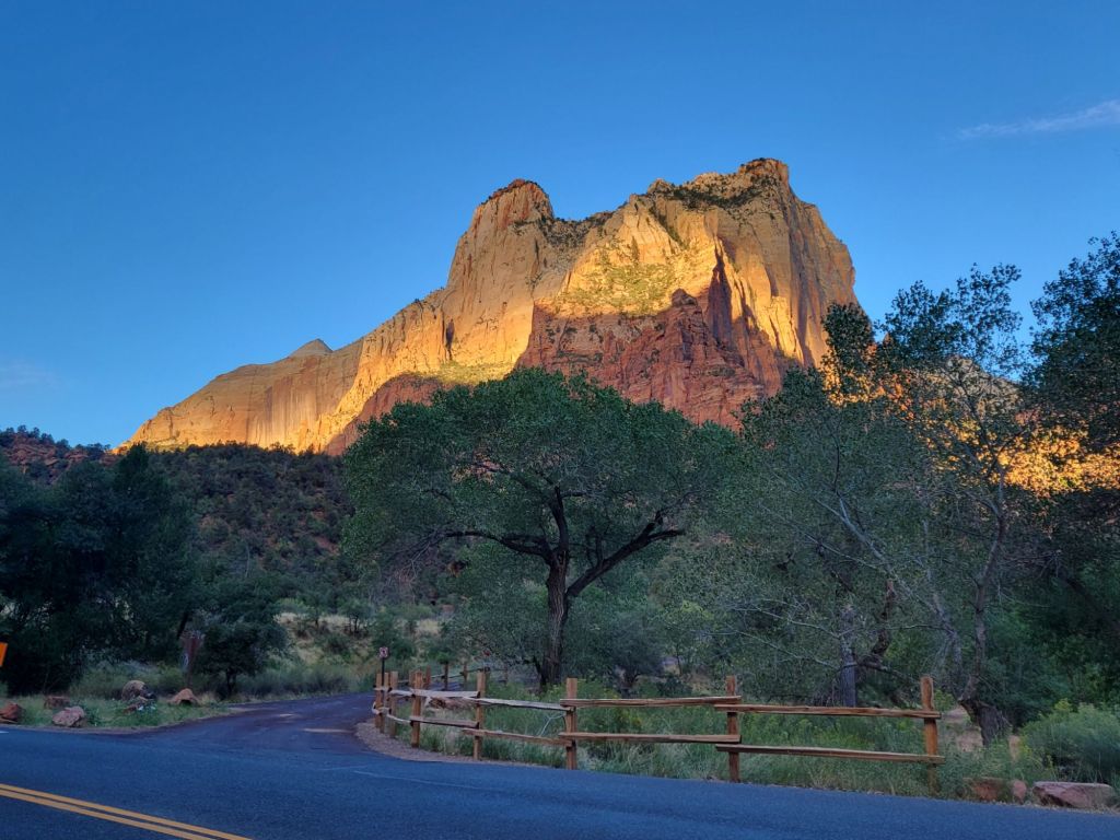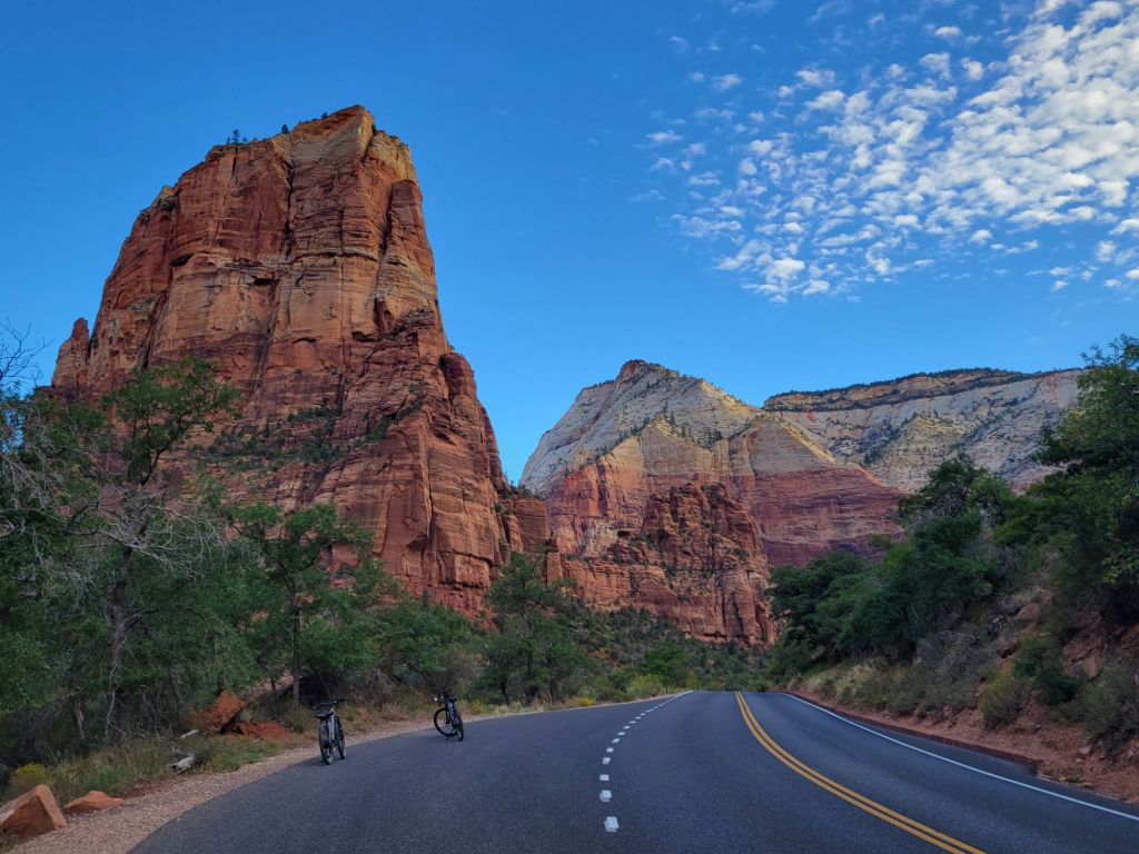 The Zion-Mount Carmel Highway is another one of those mountain roads with steep drop-offs and serpentine turns. And no shoulders! It also includes a mile-long narrow tunnel.