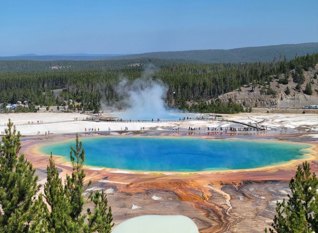 We arrived at Grand Prismatic in the afternoon, which is the best time to view it. Any earlier, and the steam rising off the surface obscures the colors. We walked the Grand Prismatic Overlook Trail so that we could see it from above.