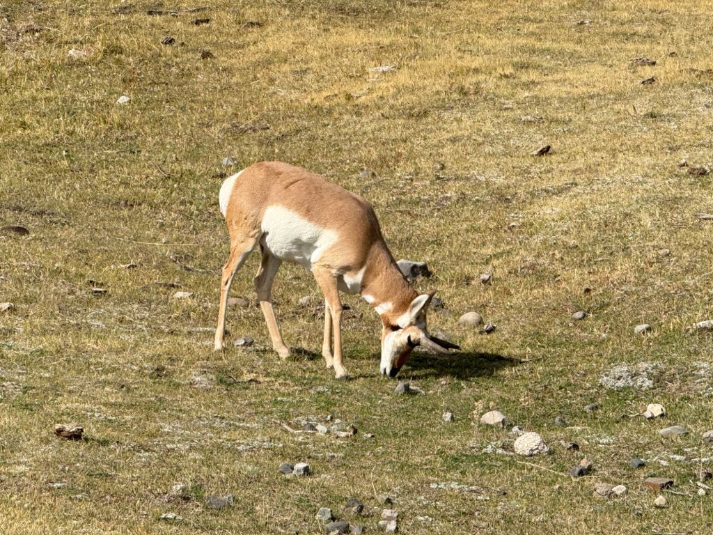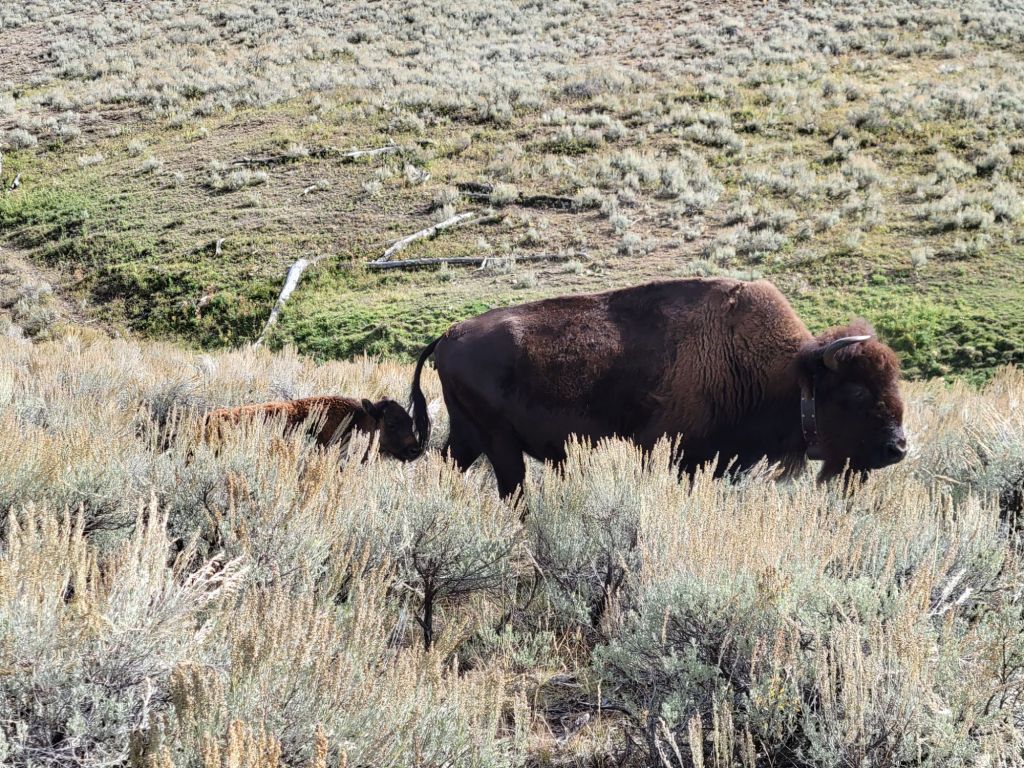 I don’t have good pictures of the bison or the wolves because they were too far away to capture on camera. One really needed a high-powered set of binoculars to see them, which we did not have. However, some of the folks who did were kind enough to let us look through theirs.
