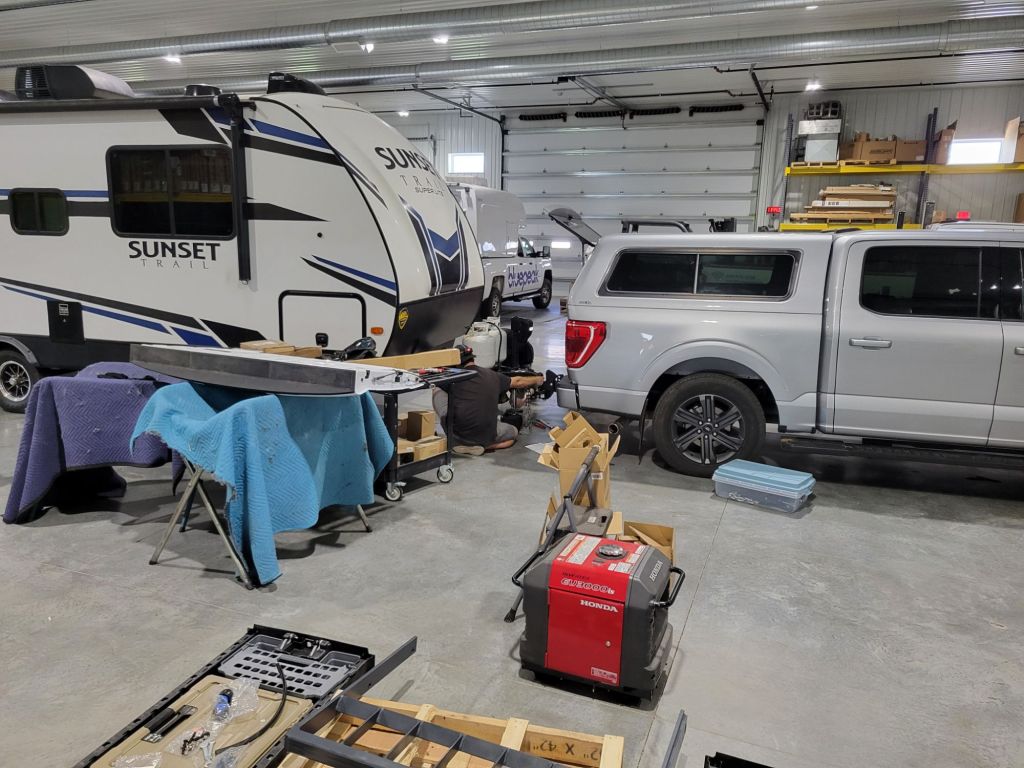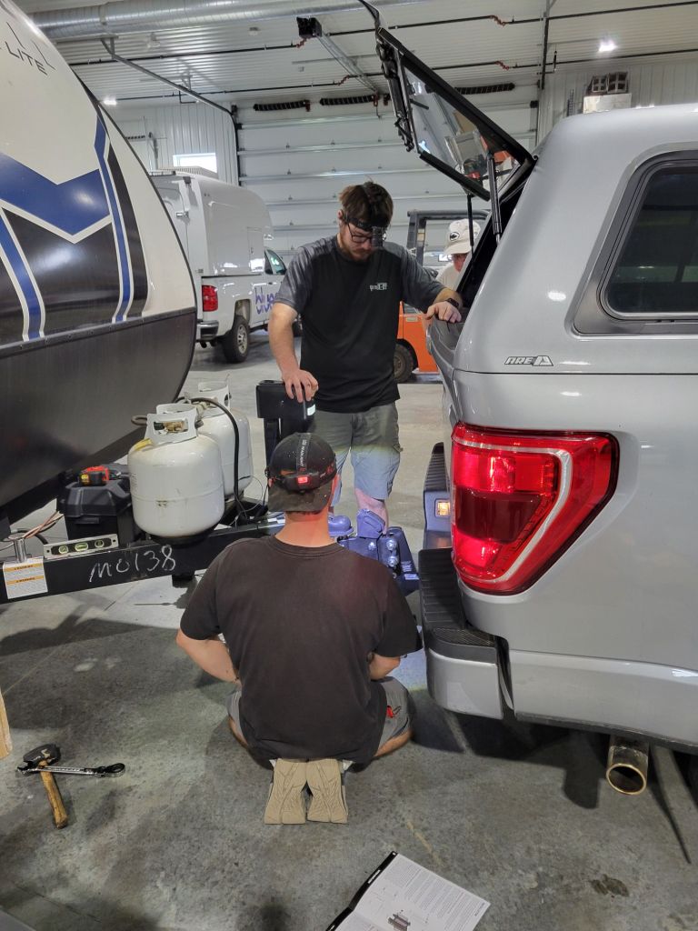 This morning, we hitched up the trailer and took it into Sioux Falls to get the new hitch installed.